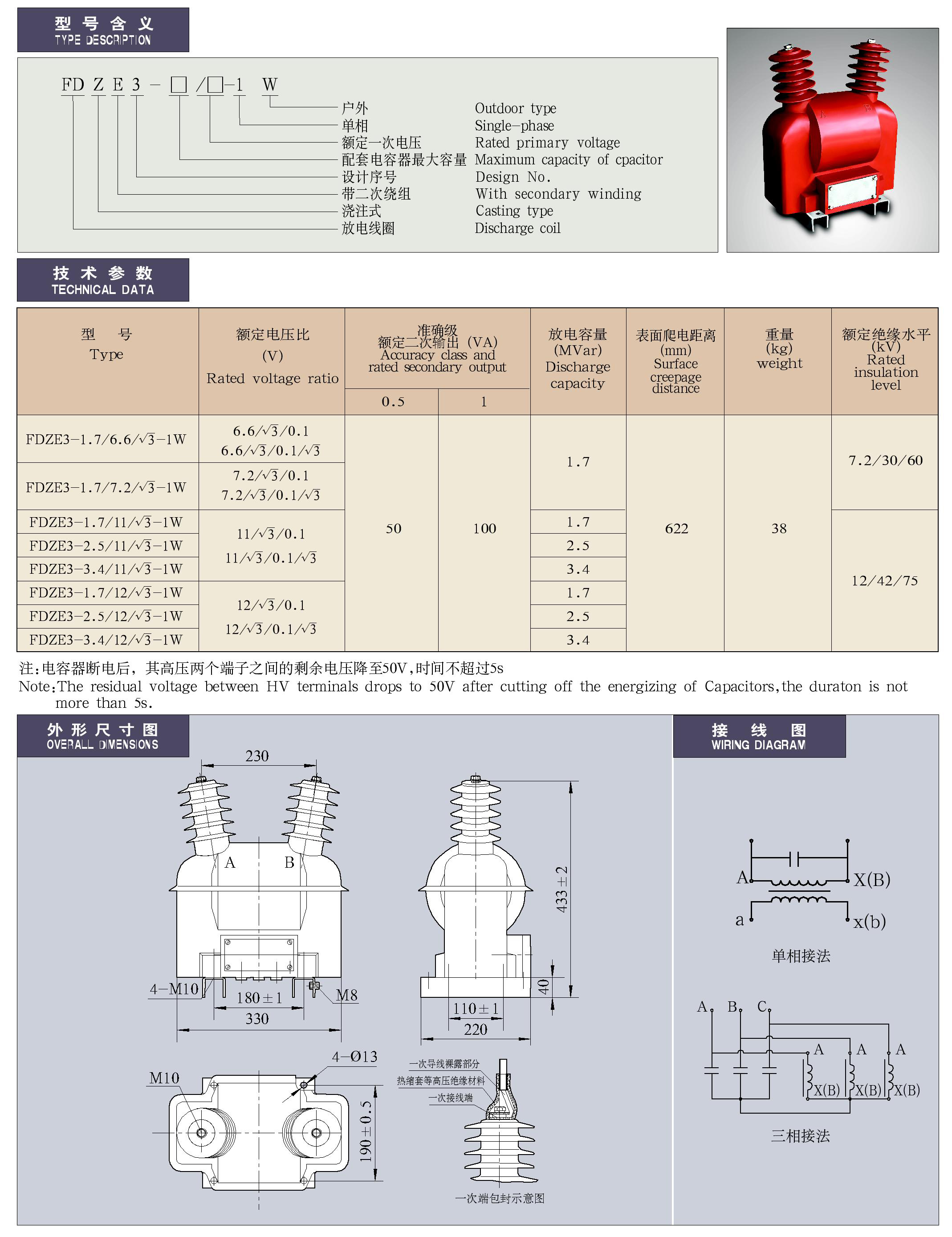 本型電壓互感器為環(huán)氧樹脂真空澆注全封閉支柱式結(jié)構(gòu),適用于額定電壓為6-10kV,額定