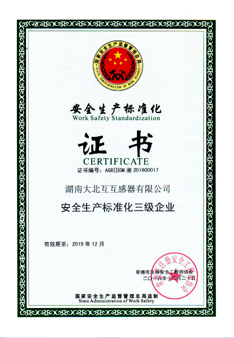 安全生產(chǎn)標準化證書