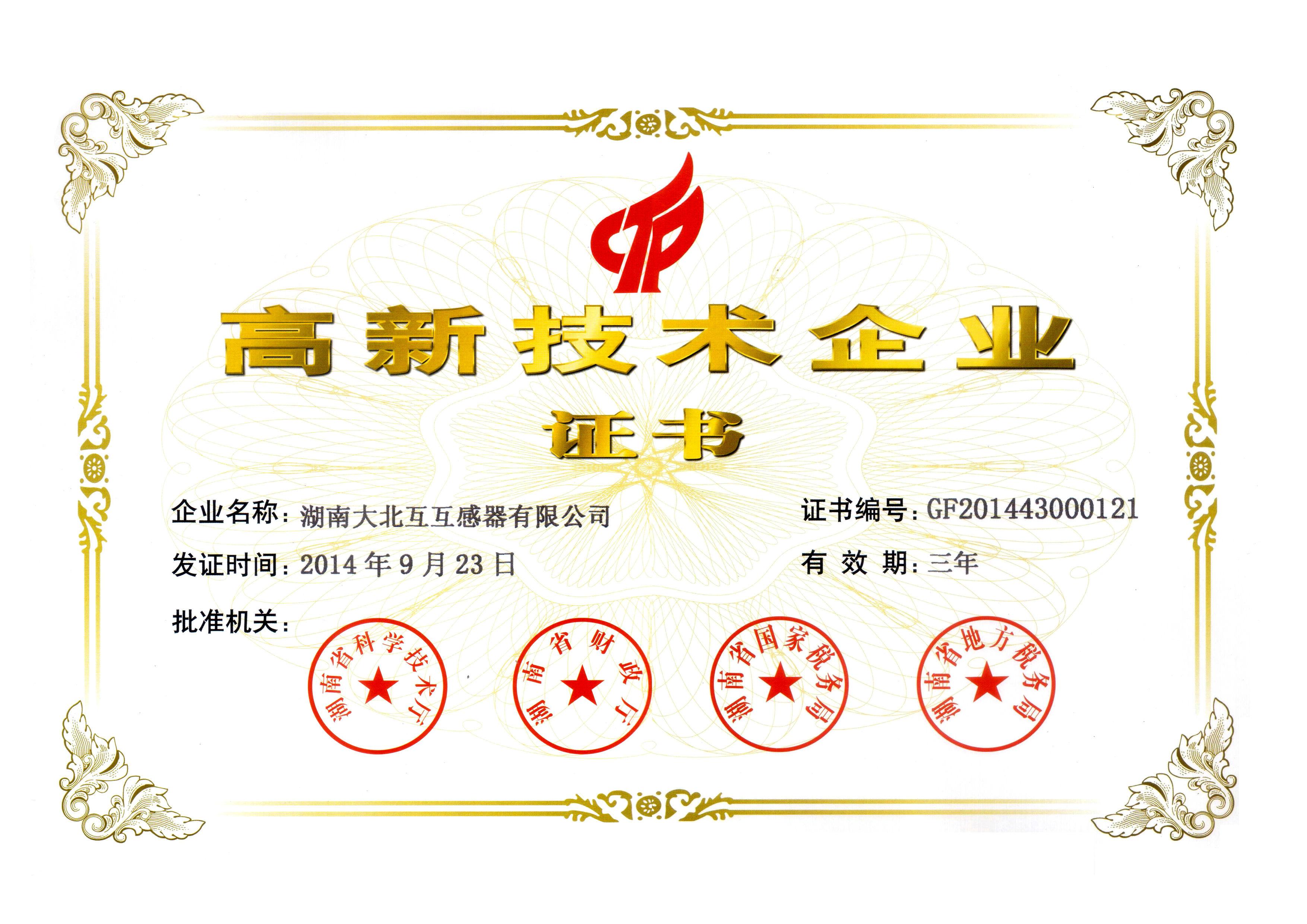 高新技術(shù)企業(yè)證書